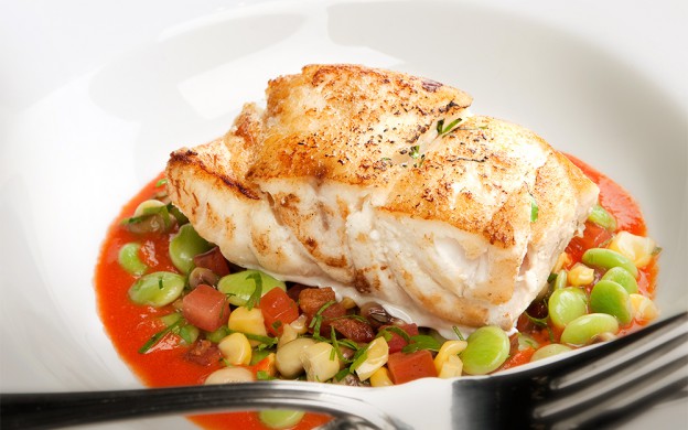 Succotash – fun to say, and even better to eat! It is said that Native Americans originated the dish and taught European settlers how to make it, but these days you’ll find it served all over the world – from Mexico to Africa. Succotash has also found a happy home in the Southern United States, where we find it complements everything from Thanksgiving dinner to backyard cookouts. In this version, hearty limas and fresh sweet corn are rounded out by crisp bell peppers, while a smoked tomato broth lends a uniqueness to the dish. Chef Scott Stefanelli recommends pairing it with a simple grilled grouper.